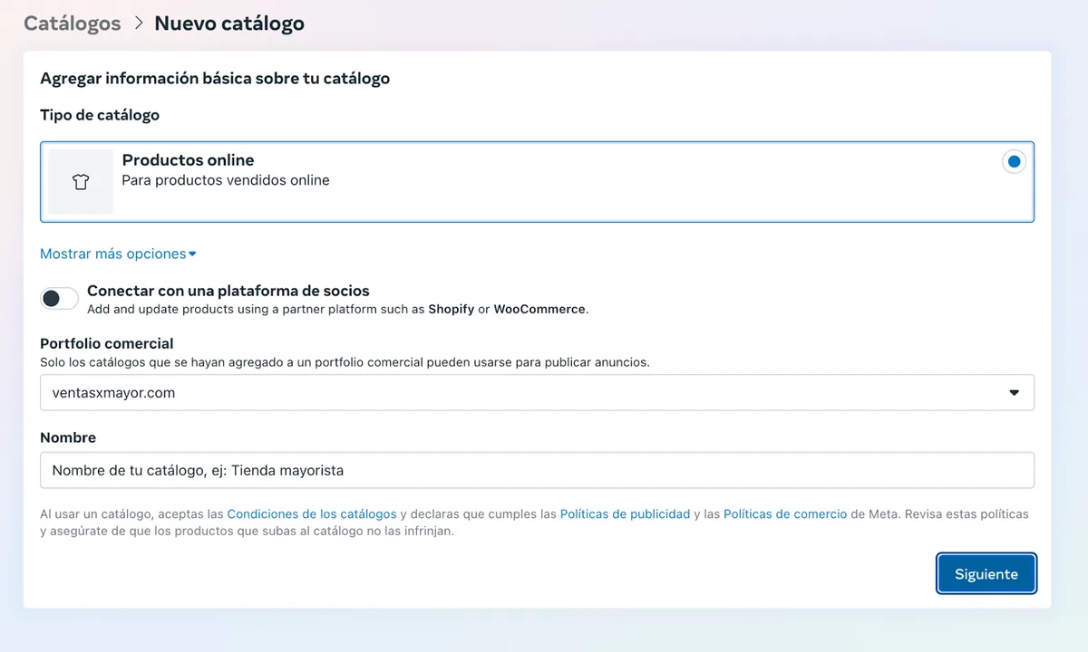 Conectar catálogo de productos a Meta