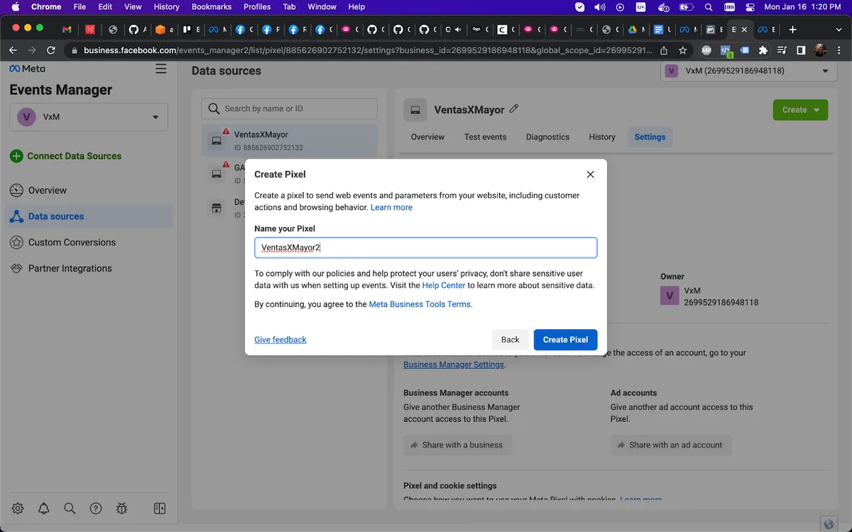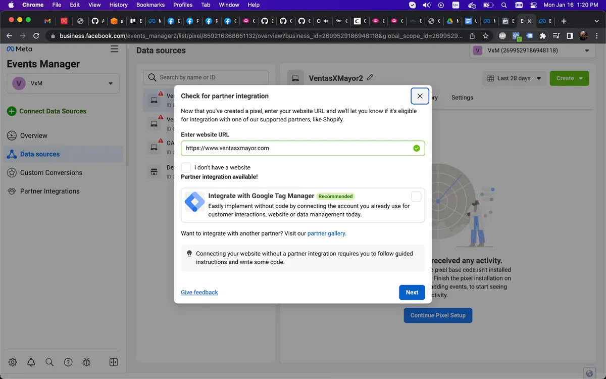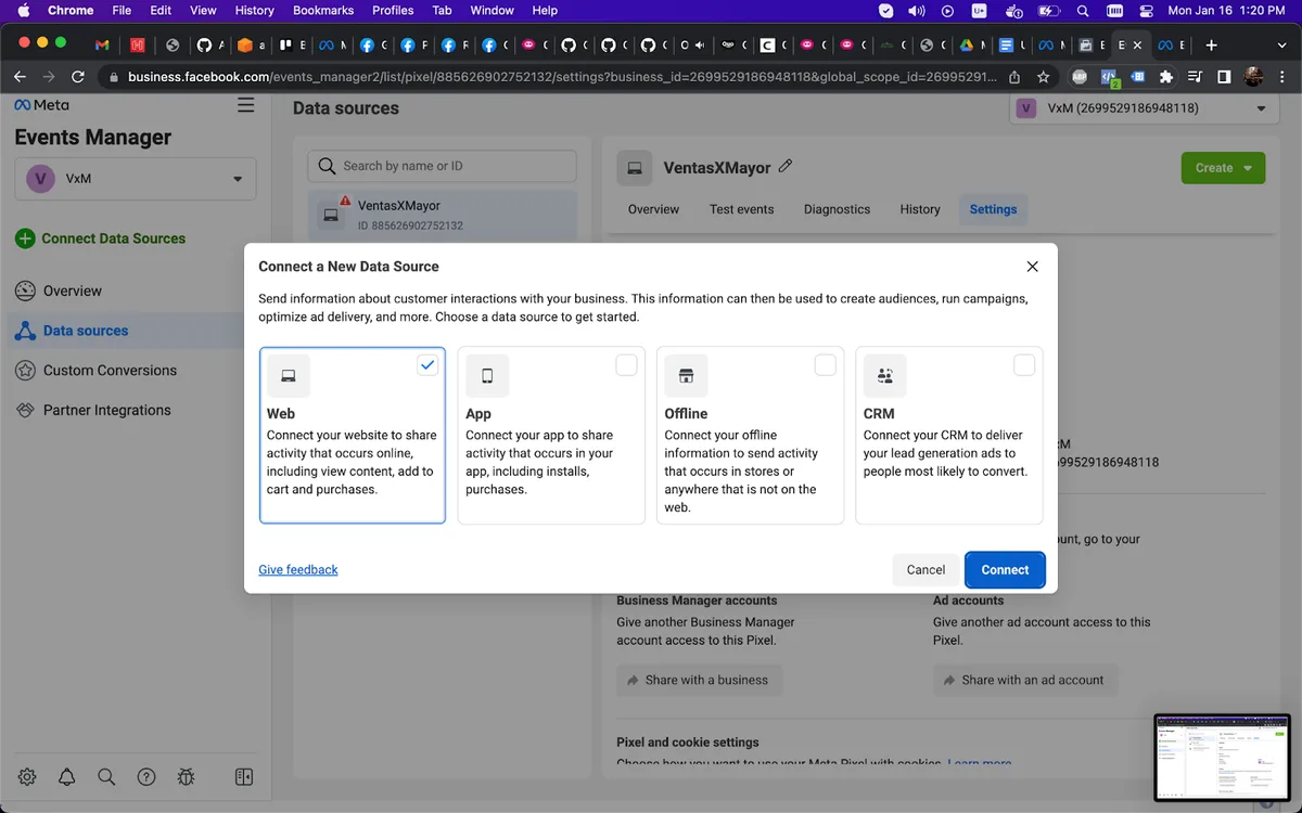 Ingresar al Event Manager en Meta Business Suite: https://business.facebook.com/events_manager2